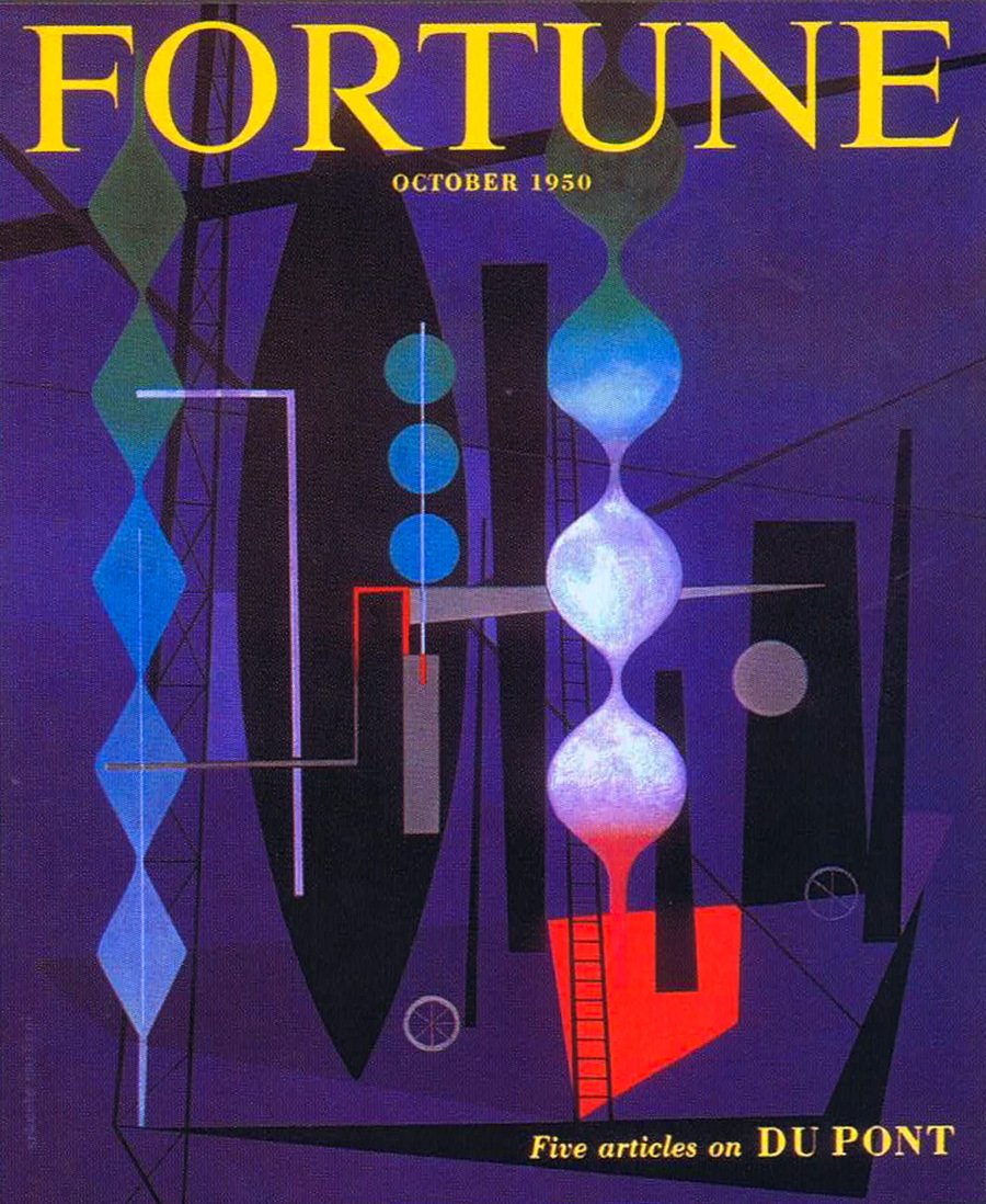 The art director for Fortune Magazine during this time (1948-60) was Leo Lionni (most know him as a children's book illustrator). Covers here: George Giusti (1953), Erik Nitsche (1954), Jerome Snyder (1951), Erberto Carboni (1950).