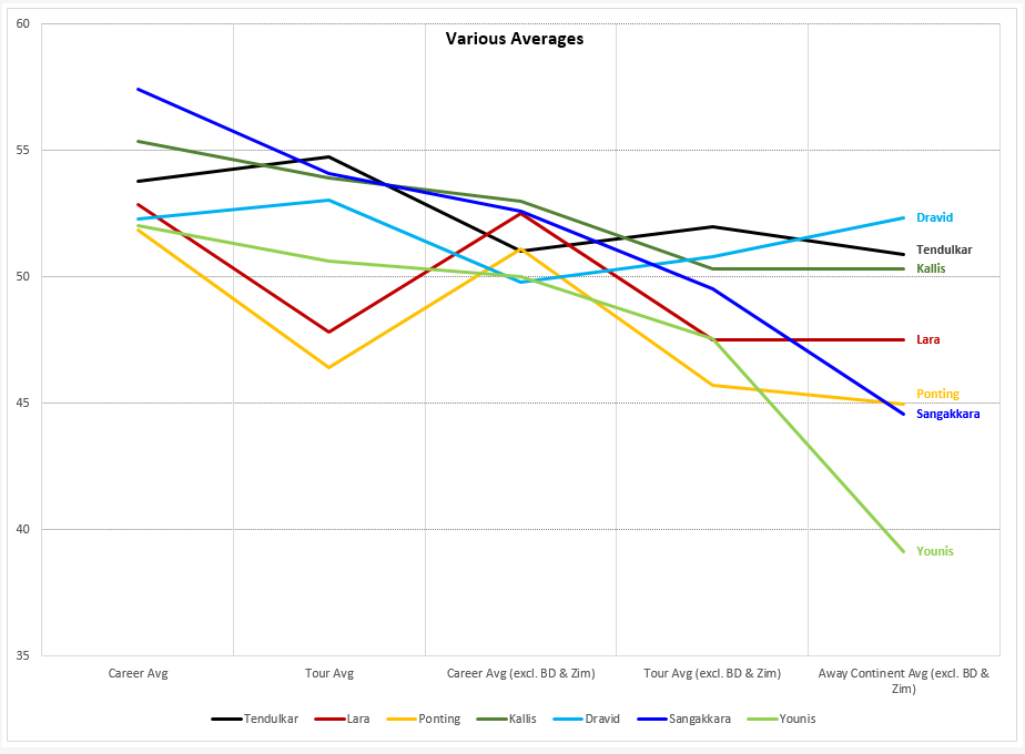 Away continent stats & opposition strength were two main reasons for my placing Sanga & Younis below.