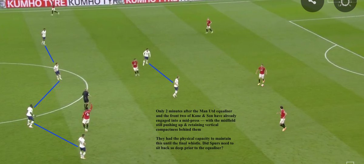 -whilst Lamela+Kane defended from the front as a duo, they did not engage in a press until one of Man Utd’s CBs carried it forwards
