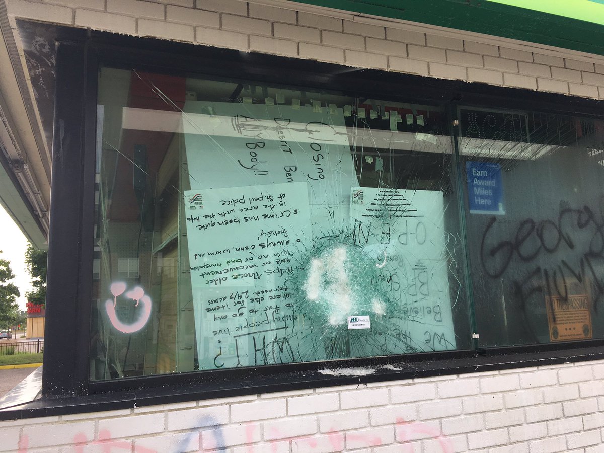 Somali guy who lives in this building tells me he had to spray-paint pleas on the plywood for rioters not to burn it down. (They initially tried to burn the attached pawn shop.) Says on the first night of extreme rioting, they were mostly white. On subsequent nights, mostly black