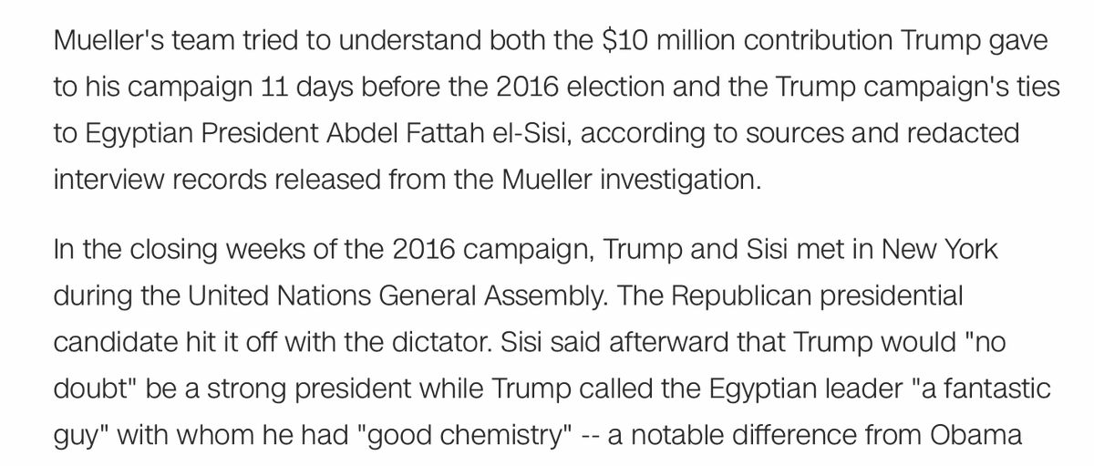 BREAKING: FOURTH, SECRET INVESTIGATION INTO TRUMP FOUND POTENTIAL ILLEGAL CAMPAIGN FINANCE FROM EGYPTIAN DICTATOR IN 2016 https://www.cnn.com/2020/10/14/politics/trump-campaign-donation-investigation/index.html