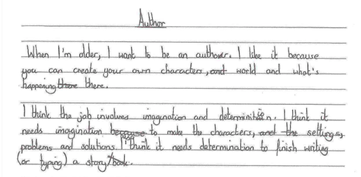 In fact, the score of 533 is about the same as that achieved in our most recent Year 5 assessment from November 2019. Here’s an example of a piece of writing with the mean Year 7 score of 533.